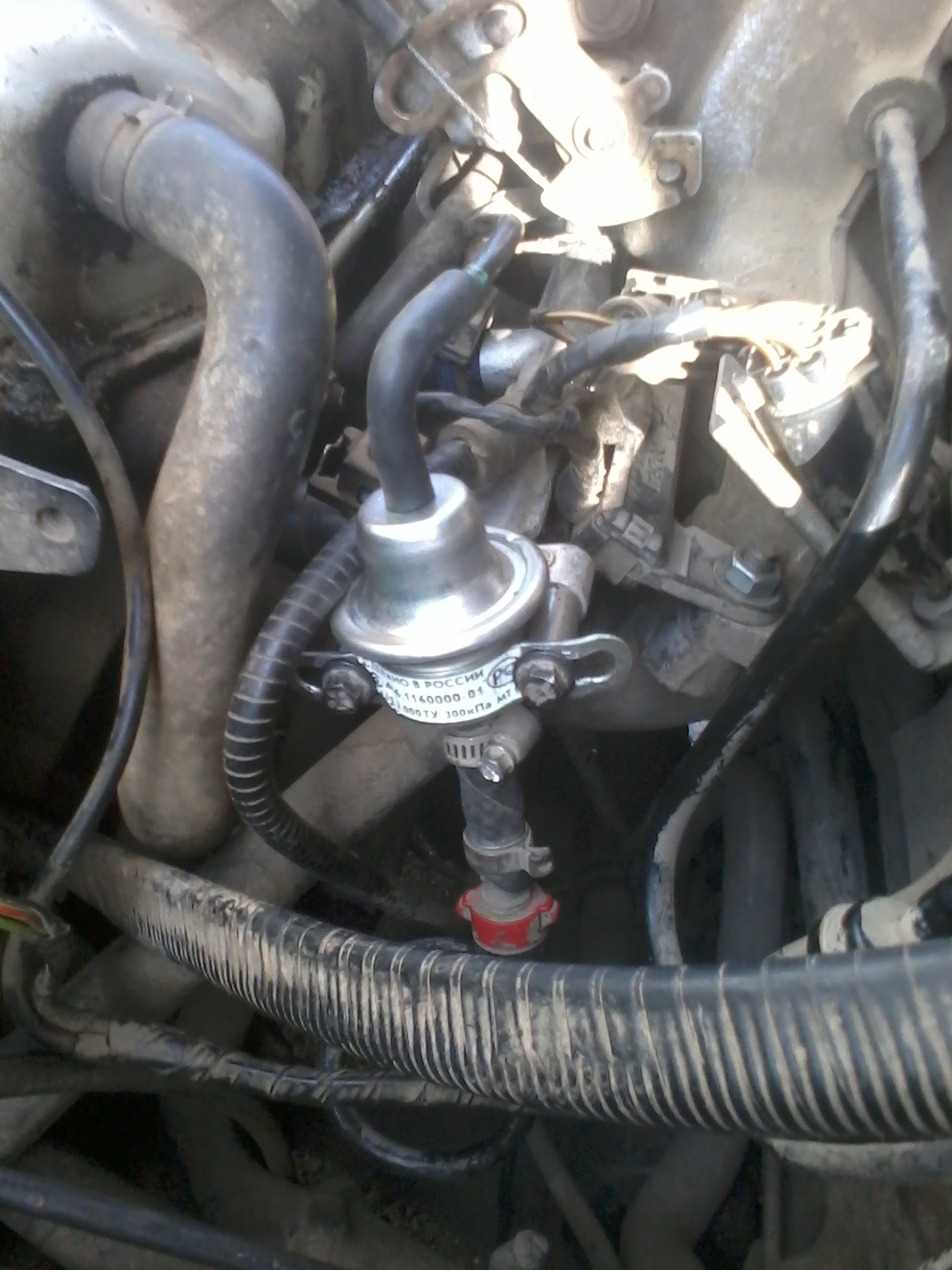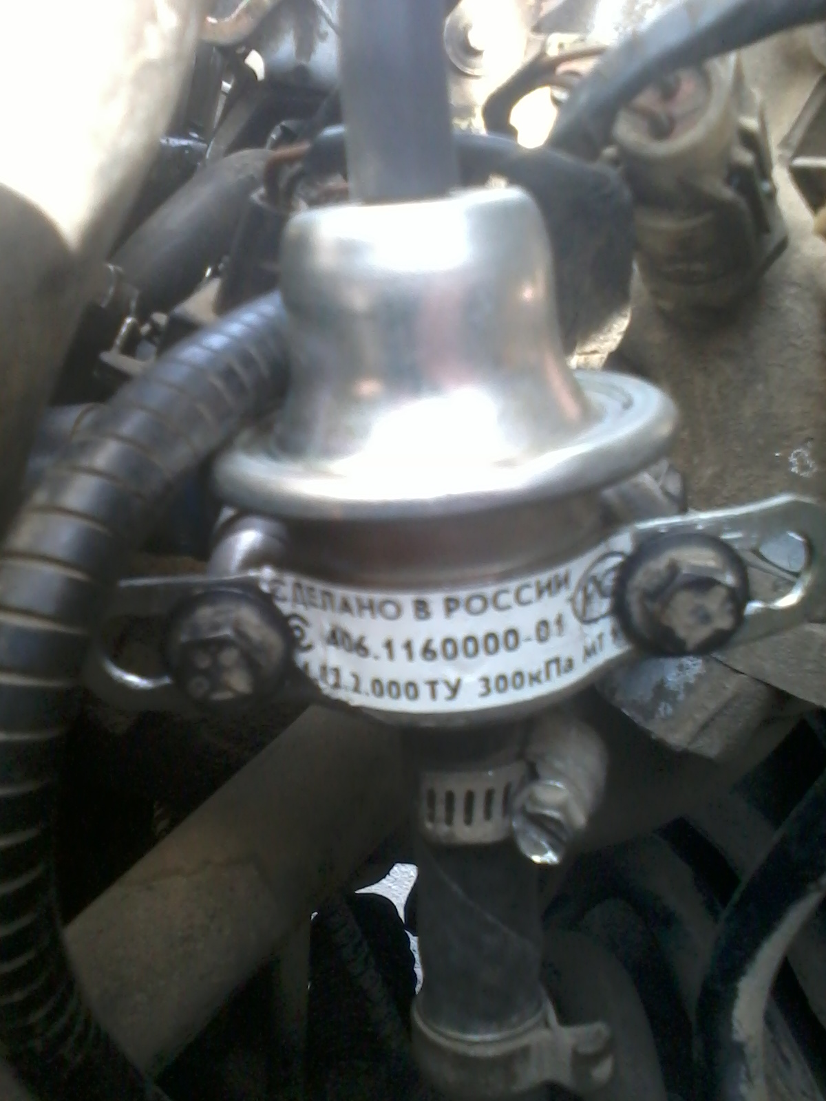 УРА!!!!!! машинк поехала :clap-clap: :smile81: :smile90: (поплюю что бы не сглазить) все оказалось банально просто - заклинило регулятор давления т.е. в обратку бенз ваще ни шел из за этого машинк и захлебывался. Забежал я в ближайший магазин и вижу регулютор от волги ну очень похож и цена 530 рубликов, посмотрел давление 300 КПа самое оно. купил подколхозил малость (жаль дрель и сверла в гараже были, так что пришлось напильником отверстия расширять) отогнул ушки побольше, отрезал 2 алюминиевых трубочки в размер и вуаля все заработало как надо!!!!!!!