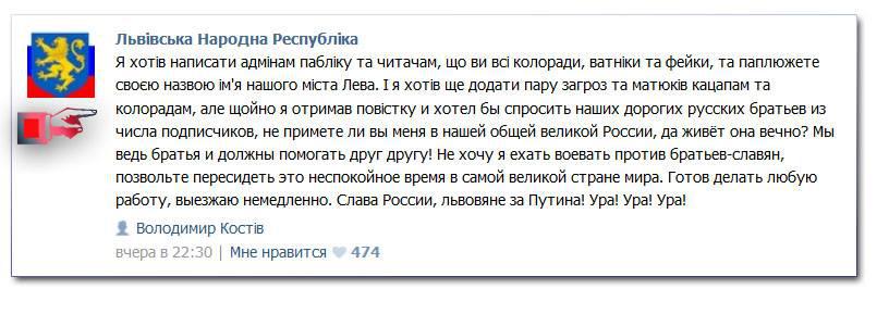 Русские очень агрессивные: они напали на шведов под Полтавой, на поляков в кремле в 1612, на Наполеона при Бородино, мы неадекватно применили силу в Сталинграде. Мы устроили геноцид украинцев, а заодно и самих русских, чтобы Украине не обидно было. Мы оккупировали восточную Европу, которая была свободной, под охраной миротворца Гитлера. И Первую, и Вторую мировые войны развязали русские! Это Сталин вынудил Гитлера напасть на СССР. Сначала подговорил завоевать пол-Европы, а потом спровоцировал на войну с Советским Союзом. Сталин был маньяком и извращенцем, звонил каждый день по утрам Гитлеру и говорил ему: «Редиска, падла, сука, пасть порву!» Наконец Гитлер не выдержал, после того как в последний раз Сталин позвонил ему по сотовой связи 22 июня в 4 утра. И такого наговорил, что Гитлер отдал приказ немедленно перейти границу СССР. Таким образом Советская армия варварски расправилась с гуманным немецким фашизмом.