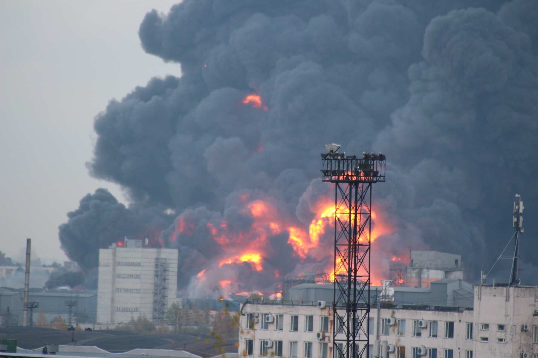 Горит уже 2 часа, 9 т.кв.м. Тушат 40 пожарных расчетов, вертолет. 5-ый (высший) номер сложности, присвоен впервые в году.