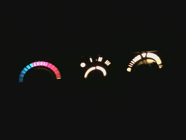 2-е , машин достался с абсолютно не читаемыми в ночное время приборами - подсветка была, но капец какая слабая и противно-болтного цвету. вскрытие показало абсолютно оттоженный пластик нахлобучек, кои рассыпались в руках. выкинул нах - щаз прикольный светло-янтарный оттенок! заодним и в блоке управления печкой отодрал слой зеленящий - там сложнее и терпение надо, и нож острый и отвертку с тонким жалом.. но вопщем управился - довольный теперь.