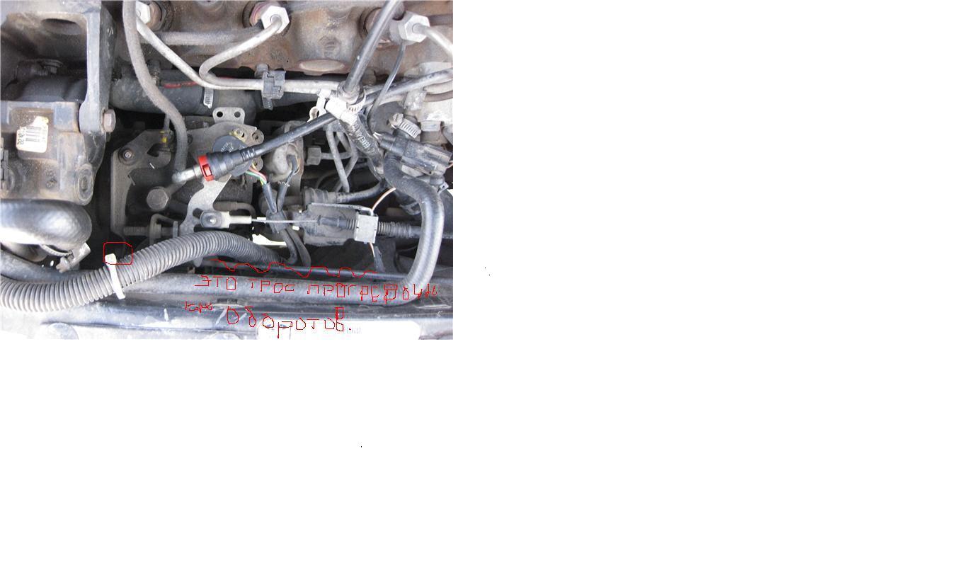 У Вас ТНВД Лукас (DPC). В передней части насоса расположен рычаг холостого хода и рычаг останова, а сбоку (со стороны радиатора) маленький рычажок к которому прикрепляется трос от вакуумной мембраны. Рычаг холостого хода перемещается в вилке маленького рычажка. Этот ход от прогревочных оборотов до штатных оборотов прогретого двигателя. Если обороты холостого хода не падают, то или на мембрану постоянно подается вакуум, или заело маленький рычажок. Я на втором снимке обвел тросик холодного запуска.