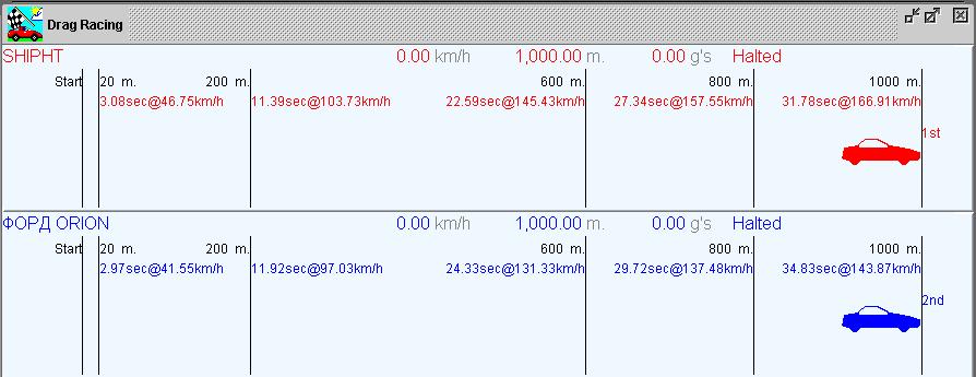 Так вот предложение: Если есть желание можете прислать мне данные по машине (список необходимых параметров по результатам опроса), чтобы проводить виртуальный драг рейсинг с чемпионатом или без.