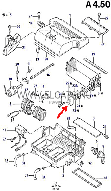 Если верить схеме - печка питается от кондейных шлангов, а они у меня в моторном отсеке открученные болтаются, а в месте, указанном красной стрелкой 22 (расширительный клапан кондиционера) они намертво присобачены.