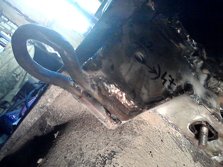 Я может быть и не заморачивался бы насчёт этого уха (можно было цыпляться и за прицепное).Но само прицепное крепиться одним горизонтальным болтом за эту часть лонжерона(на фото ниже видно отверстие под болт).На этот болт идёт практически весь вес прицепа.