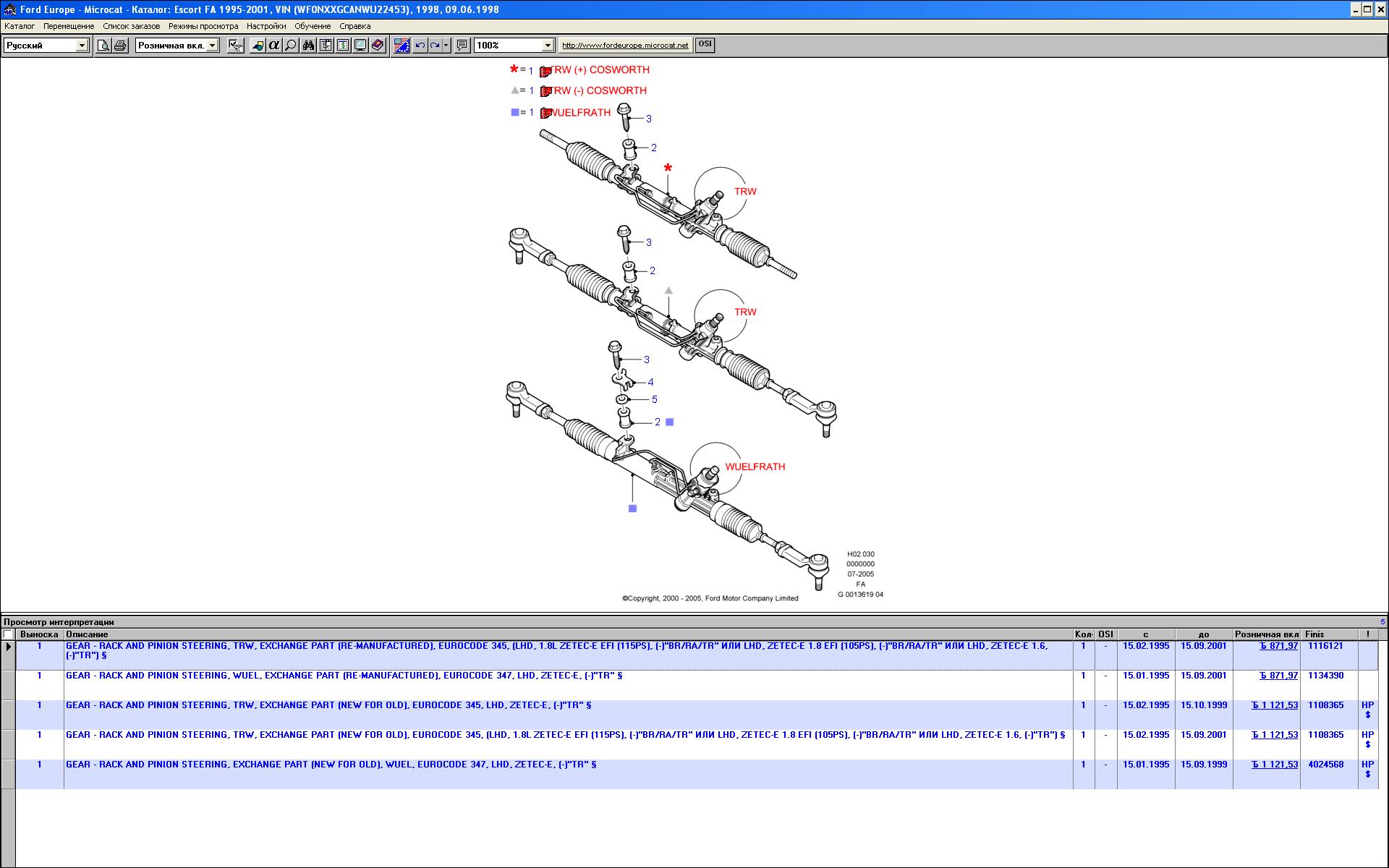 WF0NXXGCANWU22453 рулевая рейка Wuelfrath подскажите номер пожалуйста
