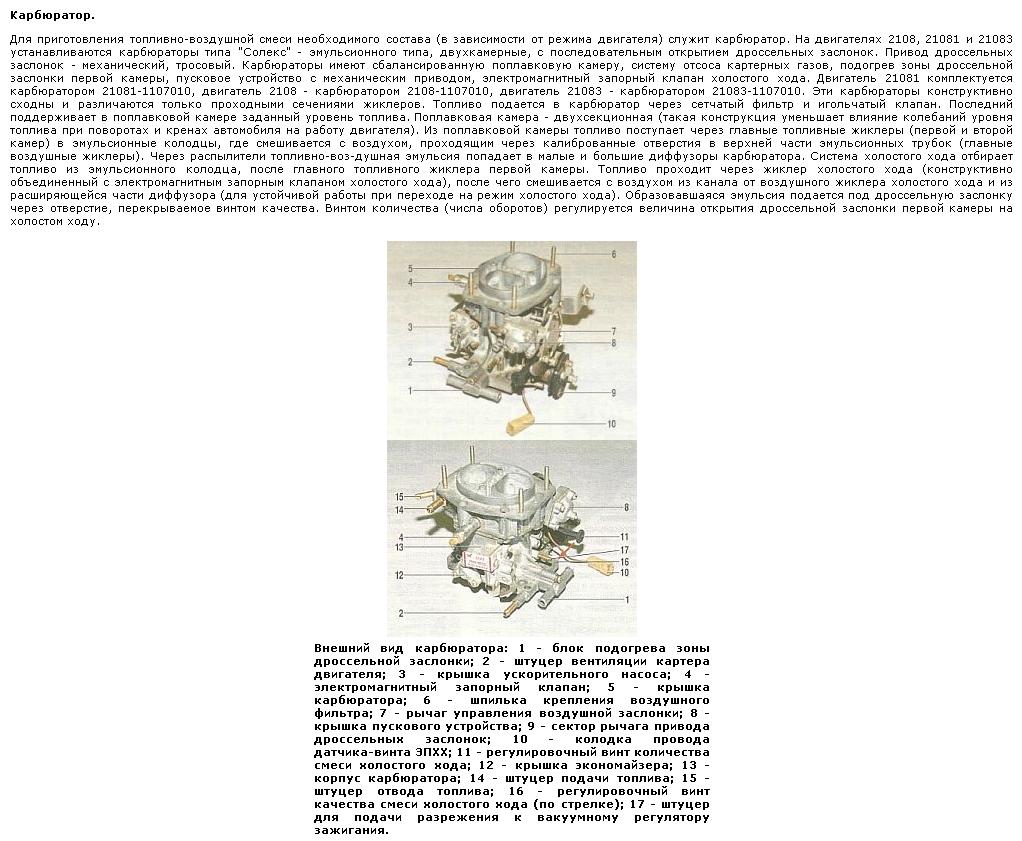 Fsa,ты не внимателен.Если провести прямую линию по этому штуцеру,то она выйдет к винту качества,там никакого штуцера быть не может.А вот блок обогрева смеси с 2мя штуцерами-подключается в разрез к шлангам печки.Этот блок в комплекте не идёт.,но его лучше поставить,на холодную прогрев лучше и ХХ.